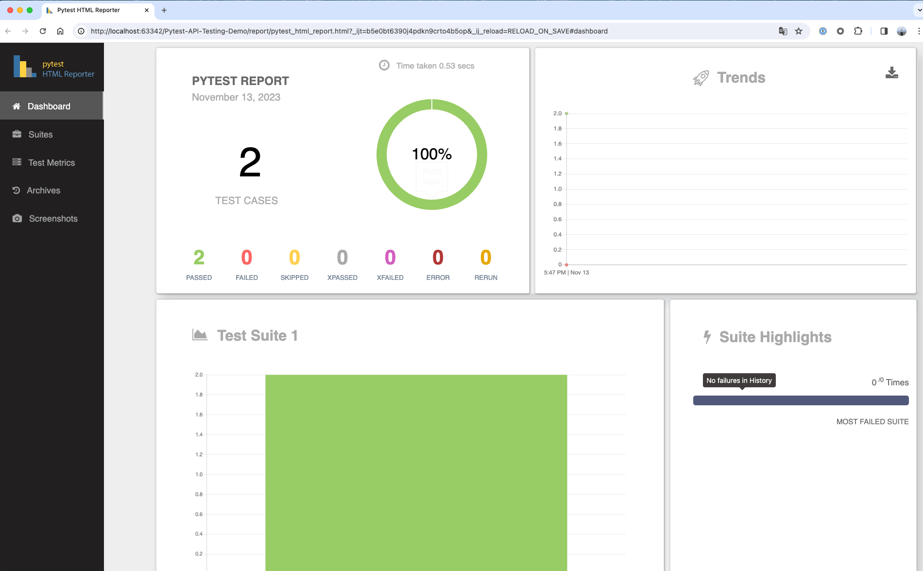 assert response.json() == post_api_response_dataENV=dev pytest test_case/test_demo_allure.pyRun the following command to view the allure report in the browser