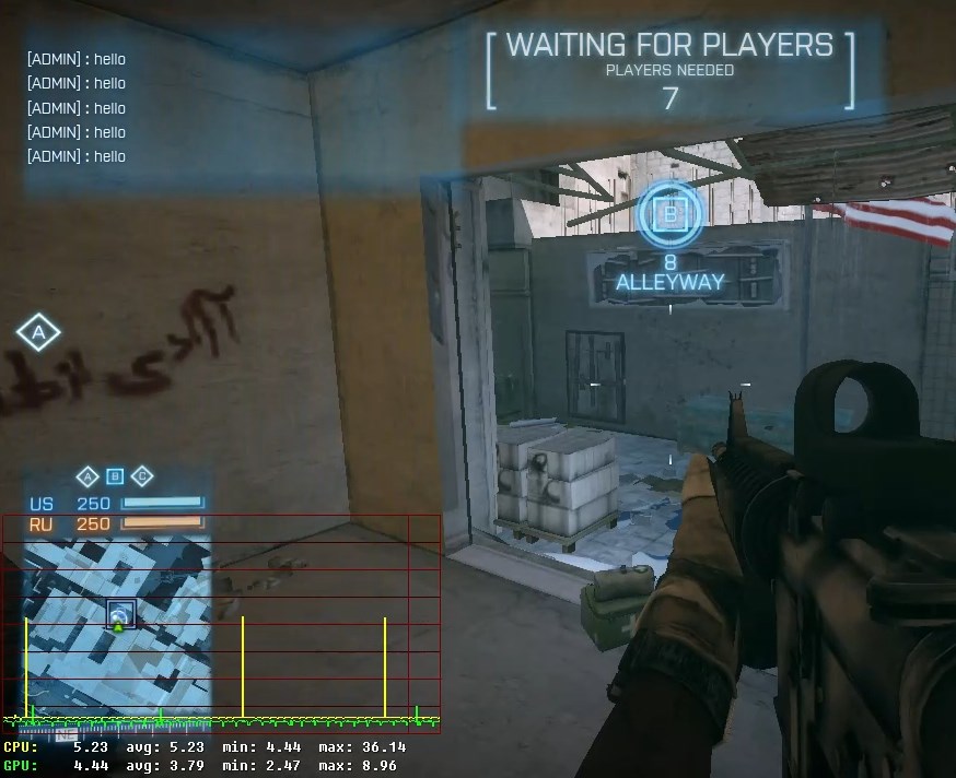 The performance graph shows the cpu response in yellow. You can see 3 spikes that all appeared when a message came in.
