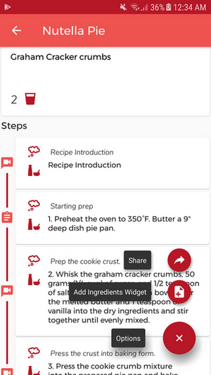 - Add your Favorite Ingredients to the Home Screen Widget.