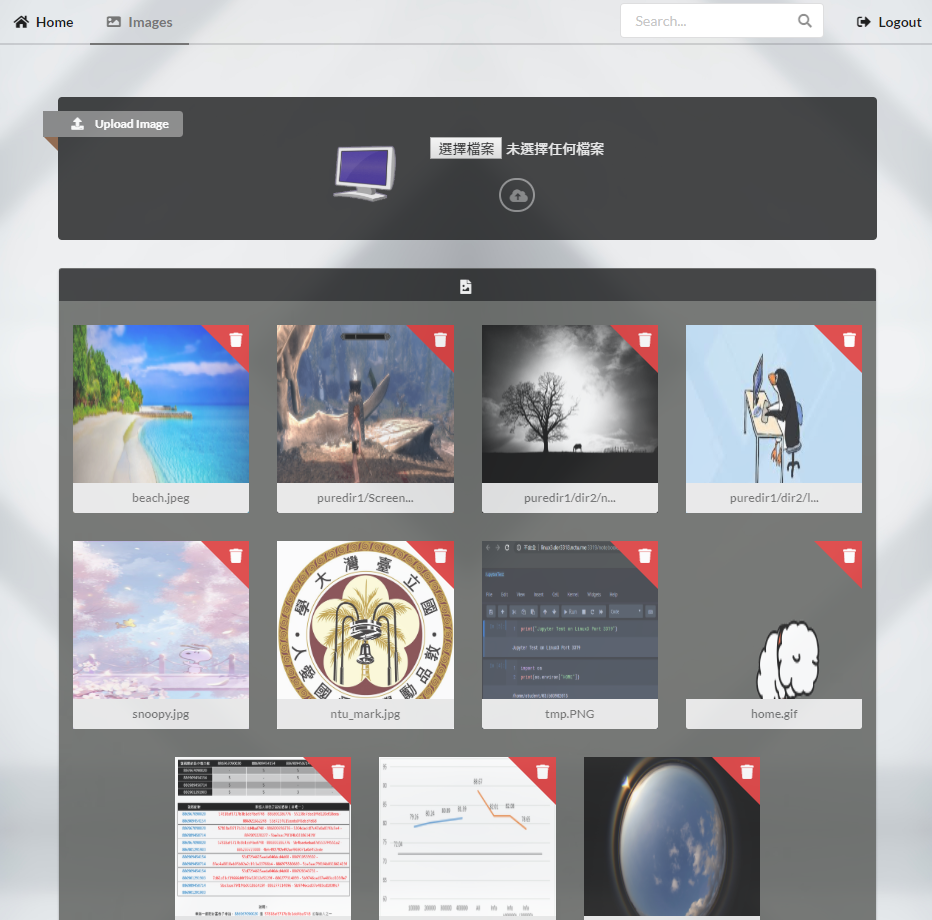 The project contains a simple web application which supports image uploading and image searching. It could be viewed as a temporary or private cloud space that manages the images you uploaded.