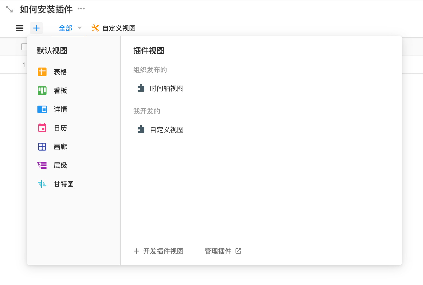 在应用里新建一个工作表并新建一个开发插件视图。