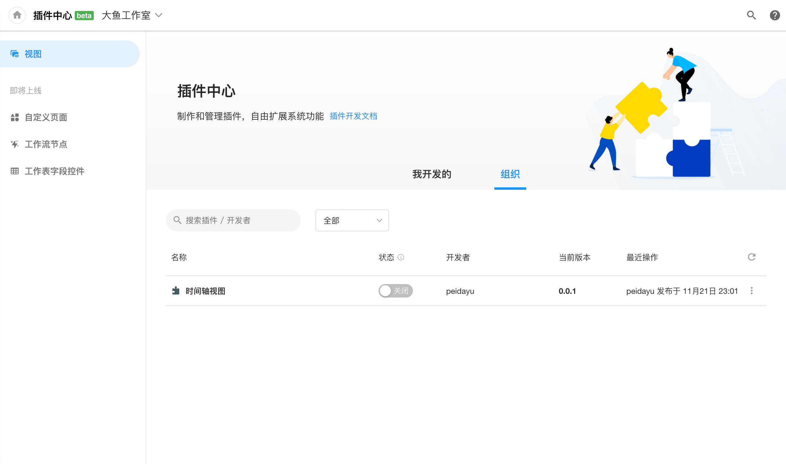 从明道云首页进入插件中心可以看到刚刚发布的插件。
